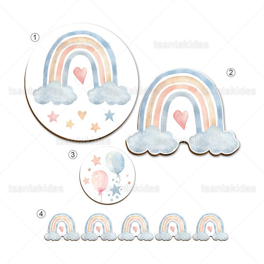 Ξύλινο σετ διακόσμησης εκτυπωμένο με θέμα Rainbow twins