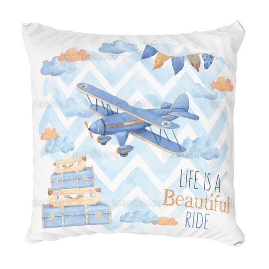 Διακοσμητικό μαξιλάρι με θέμα travel και αεροπλανάκι