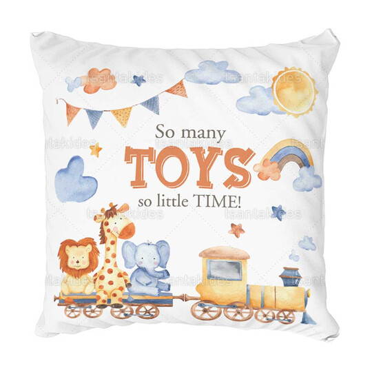 Διακοσμητικό μαξιλάρι με θέμα το τρενάκι και τα ζώα της ζούγκλας