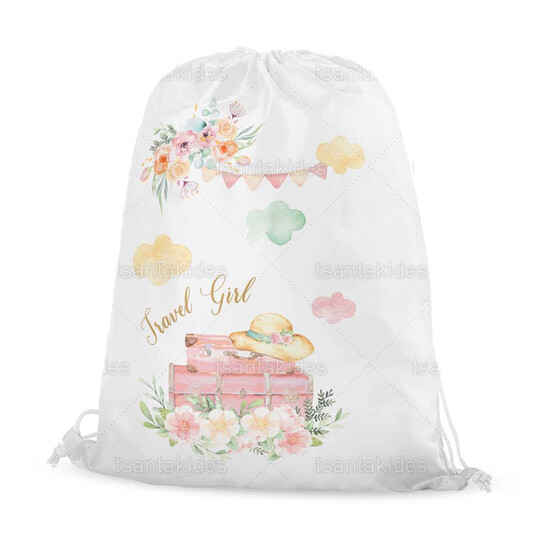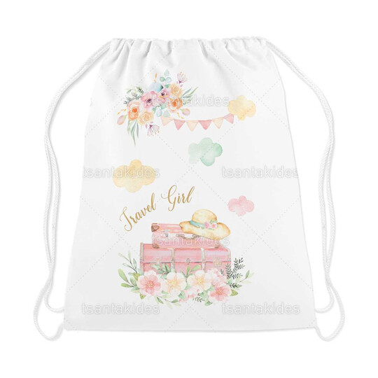 Υφασμάτινο σακιδιο πλατης εκτυπωμένο με θέμα travel girl
