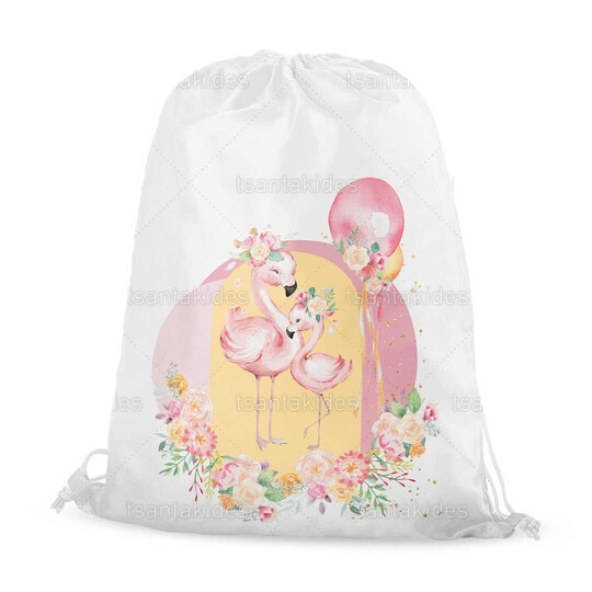 Υφασμάτινο σακιδιο πλατης εκτυπωμένο με θέμα Floral Flamingo