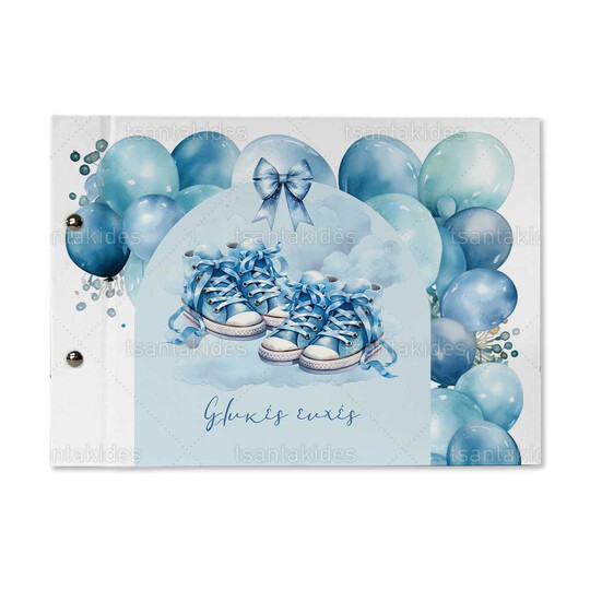 Βιβλίο ευχών εκτυπωμένο με θέμα Twins baby blue shoes