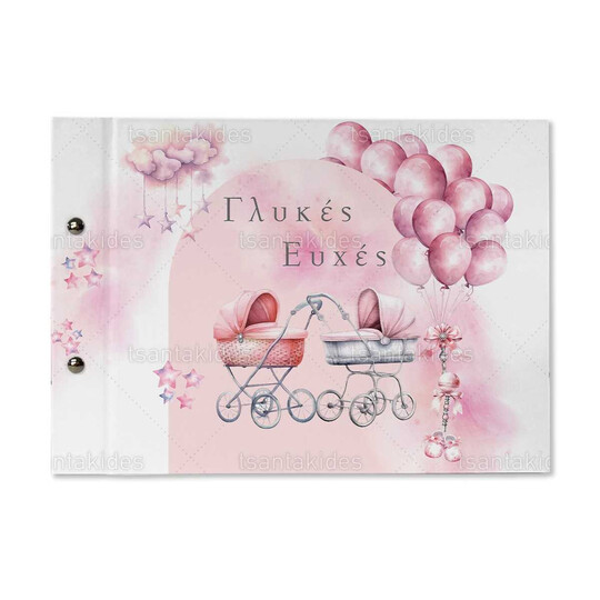 Βιβλίο ευχών εκτυπωμένο με θέμα Twins baby stroller