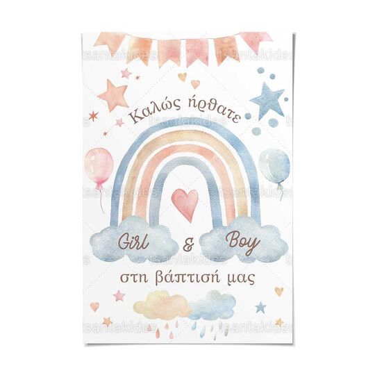 Καρτολίνο βάπτισης εκτυπωμένο με θέμα Rainbow twins