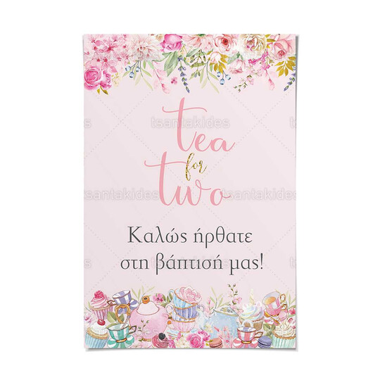 Καρτολίνο βάπτισης εκτυπωμένο με θέμα shabby chic και teapot