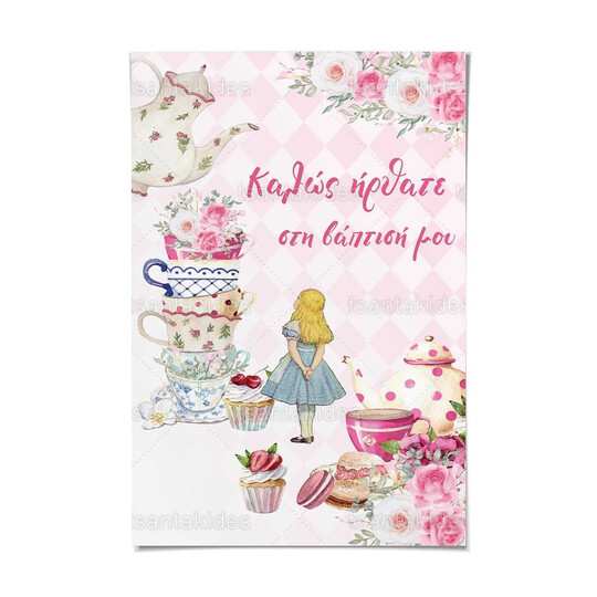 Καρτολίνο βάπτισης εκτυπωμένο με θέμα Alice Teapot & Candies