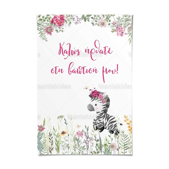 Καρτολίνο βάπτισης εκτυπωμένο με θέμα Cute Zebra