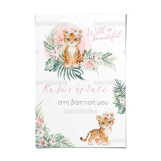 Καρτολίνο βάπτισης εκτυπωμένο με θέμα Baby Girl Tiger