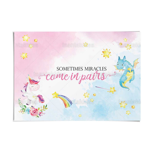 Χαρτινό σουπλά βάπτισης εκτυπωμένο με θέμα το μονόκερο και το δράκο