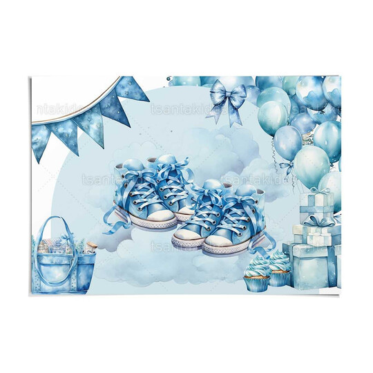 Χαρτινό σουπλά βάπτισης εκτυπωμένο με θέμα Twins baby blue shoes