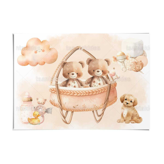 Χαρτινό σουπλά βάπτισης εκτυπωμένο με θέμα Teddy twins