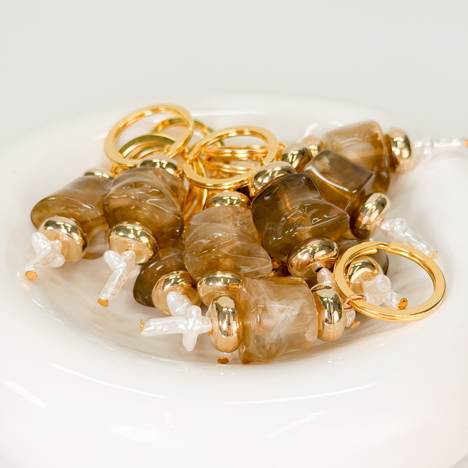Ένας γήινος και εξαιρετικά σικάτος συνδυασμός που αποπνέει ζεστασιά και πολυτέλεια! Το μαρτυρικό μπρελόκ της Celfie and Co (J-4) συνδυάζει μια εντυπωσιακή μεγάλη καφέ ακρυλική χάντρα με μια επιβλητική χρυσή ροδέλα, δημιουργώντας έναν premium χαρακτήρα. Ο περλέ σταυρός ολοκληρώνει το σχέδιο με την απαλή του λάμψη, προσφέροντας ένα μοναδικό ενθύμιο-κόσμημα για τους καλεσμένους σας.