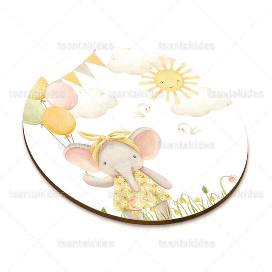 Ξύλινο διακοσμητικό μπομπονιέρας εκτυπωμένο με θέμα Summer Elephant