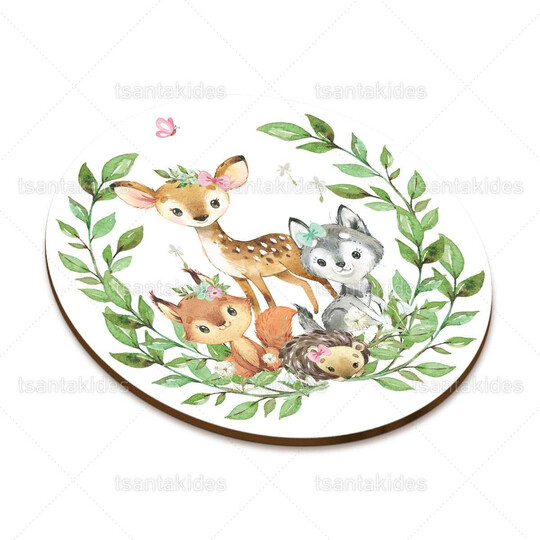Ξύλινο διακοσμητικό μπομπονιέρας εκτυπωμένο με θέμα Woodland Animals