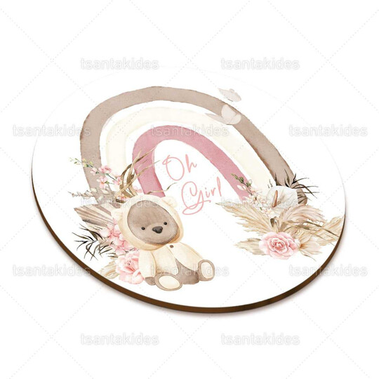 Ξύλινο διακοσμητικό μπομπονιέρας εκτυπωμένο με θέμα Boho Teddy Bear