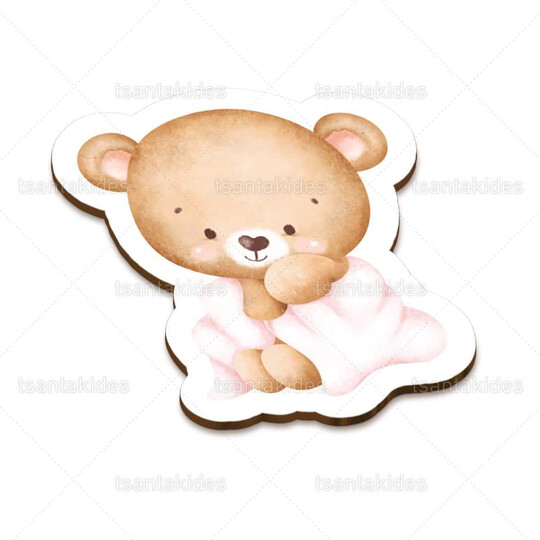 Ξύλινο διακοσμητικό μπομπονιέρας εκτυπωμένο με θέμα Teddy Bear with Balloons