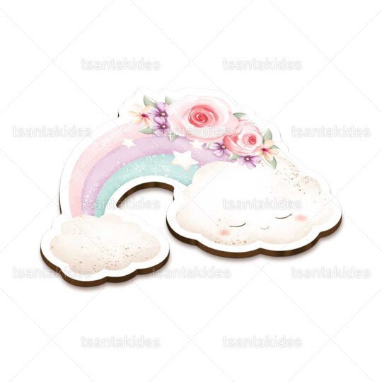 Ξύλινο διακοσμητικό μπομπονιέρας εκτυπωμένο με θέμα Star Moon & Cloud With Flowers