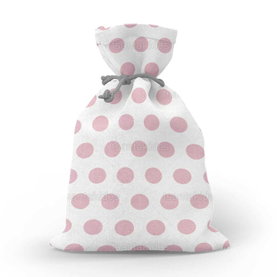 Υφασμάτινο πουγκί εκτυπωμένο με θέμα ροζ πουά μεγάλο