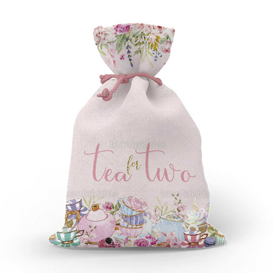 Υφασμάτινο πουγκί εκτυπωμένο με θέμα shabby chic και teapot