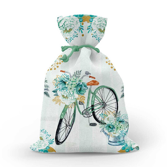 Υφασμάτινο πουγκί εκτυπωμένο με θέμα Floral Bicycle