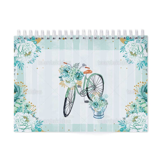 Παιδική μπομπονιέρα βάπτισης μπλοκ ζωγραφικής με διάσταση 21x29cm, εκτυπωμένο με θέμα Floral Ποδήλατο.