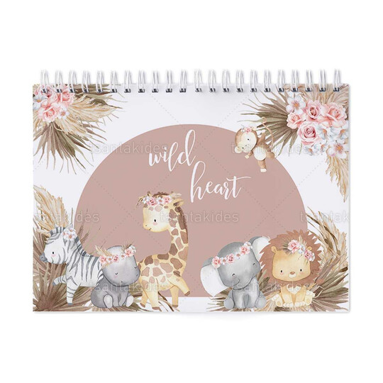 Παιδική μπομπονιέρα βάπτισης μπλοκ ζωγραφικής με διάσταση 21x29cm, εκτυπωμένο με θέμα Boho Ζώα Της Ζούγκλας.