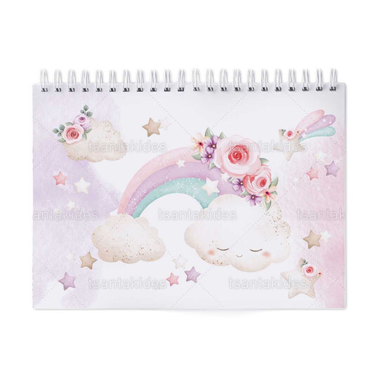 Παιδική μπομπονιέρα βάπτισης μπλοκ ζωγραφικής με διάσταση 21x29cm, εκτυπωμένο με θέμα Floral Φεγγαράκι.