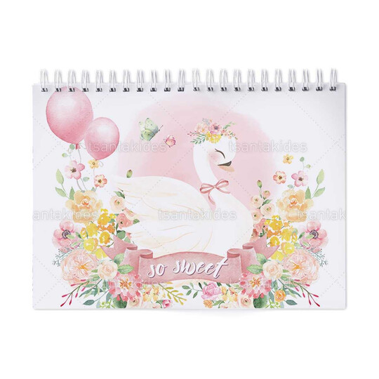 Παιδική μπομπονιέρα βάπτισης μπλοκ ζωγραφικής με διάσταση 21x29cm, εκτυπωμένο με θέμα Κύκνος.