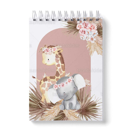 Παιδική μπομπονιέρα βάπτισης μπλοκάκι ζωγραφικής εκτυπωμένο με θέμα Boho Ζώα Της Ζούγκλας.