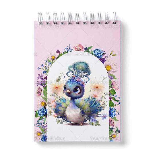 Παιδική μπομπονιέρα βάπτισης μπλοκάκι ζωγραφικής εκτυπωμένο με θέμα Cute Peacock.