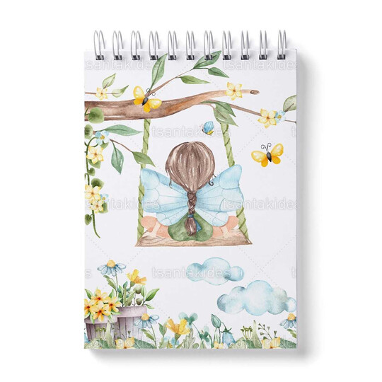 Παιδική μπομπονιέρα βάπτισης μπλοκάκι ζωγραφικής εκτυπωμένο με θέμα Νεράιδα Σε Κούνια.