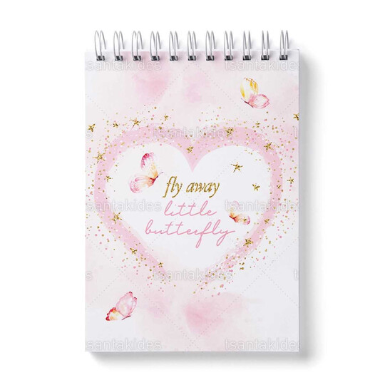 Παιδική μπομπονιέρα βάπτισης μπλοκάκι ζωγραφικής εκτυπωμένο με θέμα Πεταλούδες Σε Καρδιά.