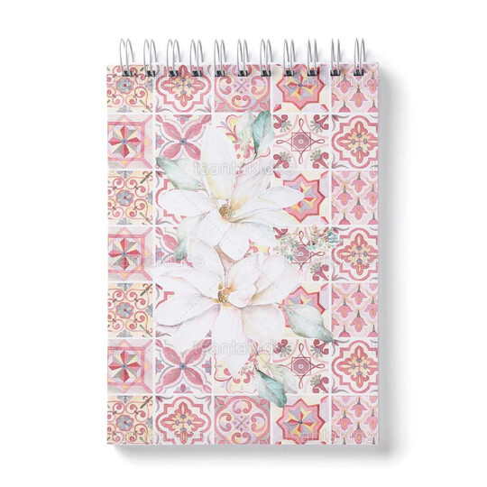 Παιδική μπομπονιέρα βάπτισης μπλοκάκι ζωγραφικής εκτυπωμένο με θέμα Pink Italian Tiles.