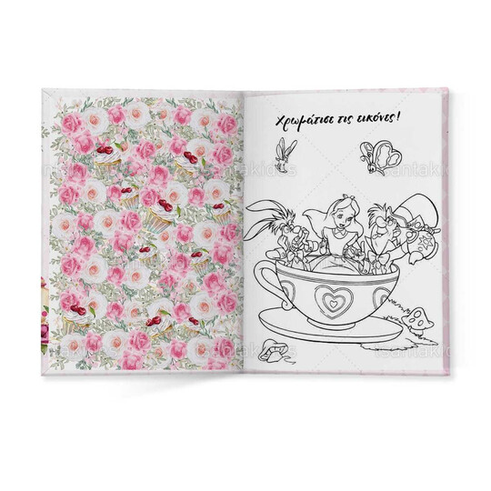 Δίπτυχο δημιουργικής απασχόλησης με ένθετο τετρασέλιδο εκτυπωμένο με θέμα  Alice Teapot & Candies