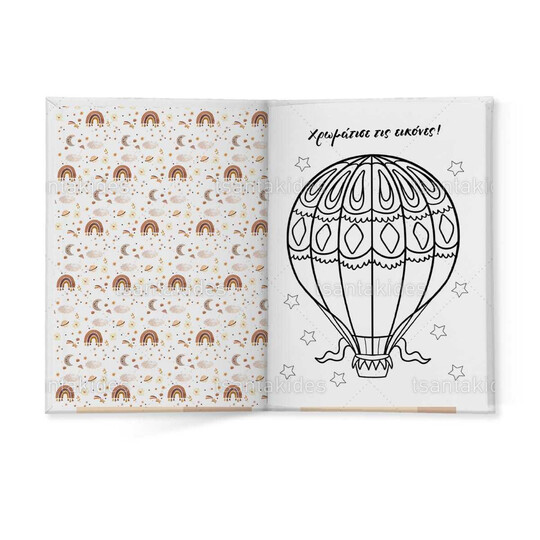 Δίπτυχο δημιουργικής απασχόλησης με ένθετο τετρασέλιδο εκτυπωμένο με θέμα  Air balloon and Rainbow