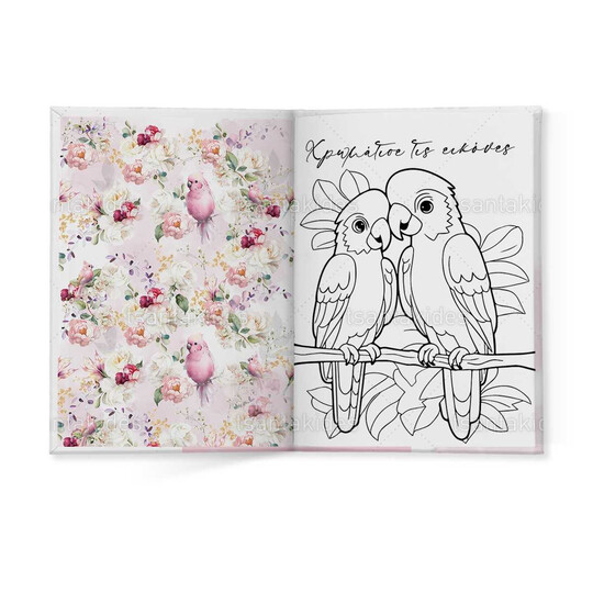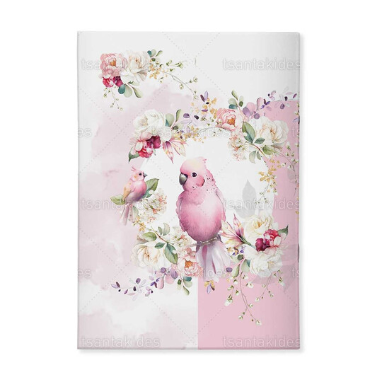Δίπτυχο δημιουργικής απασχόλησης με ένθετο τετρασέλιδο εκτυπωμένο με θέμα Pink floral parrot