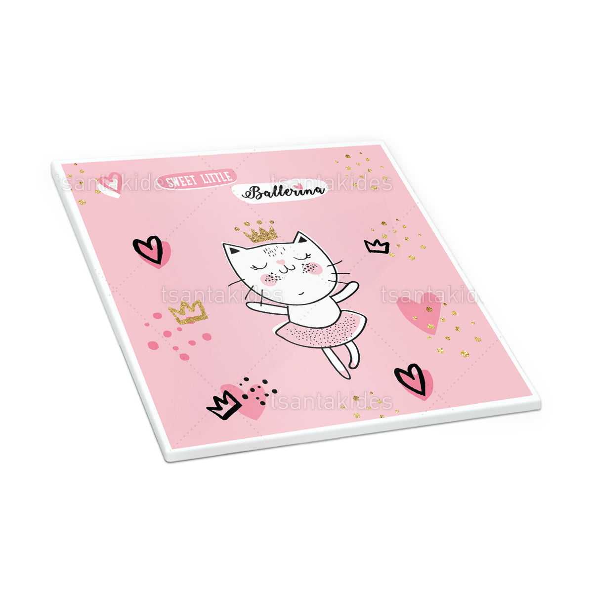 Κεραμικό σουβέρ βάπτισης εκτυπωμένο με θέμα τη γατούλα
