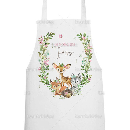 Υφασμάτινη ποδιά νονού/νονάς εκτυπωμένη με θέμα Woodland Animals