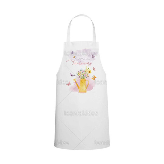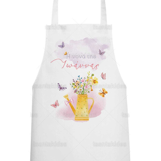 Υφασμάτινη ποδιά νονού/νονάς εκτυπωμένη με θέμα Watering Can and Wildflowers