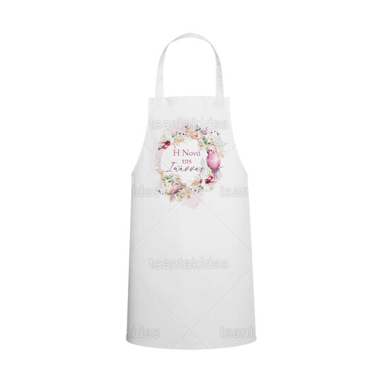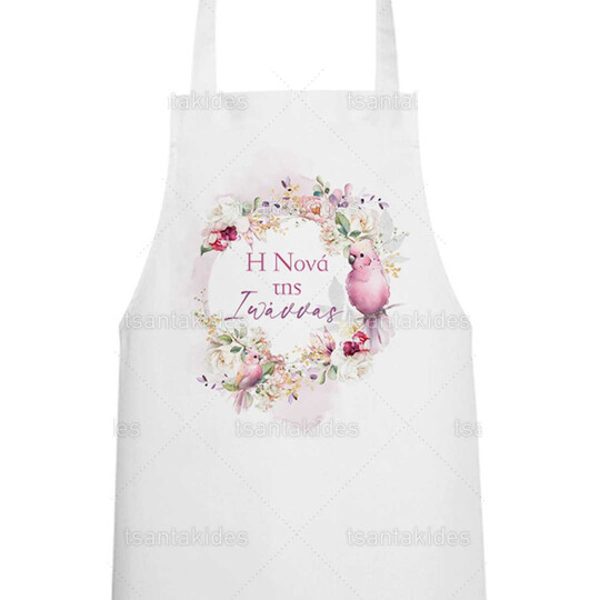 Υφασμάτινη ποδιά νονού/νονάς εκτυπωμένη με θέμα Pink floral parrot