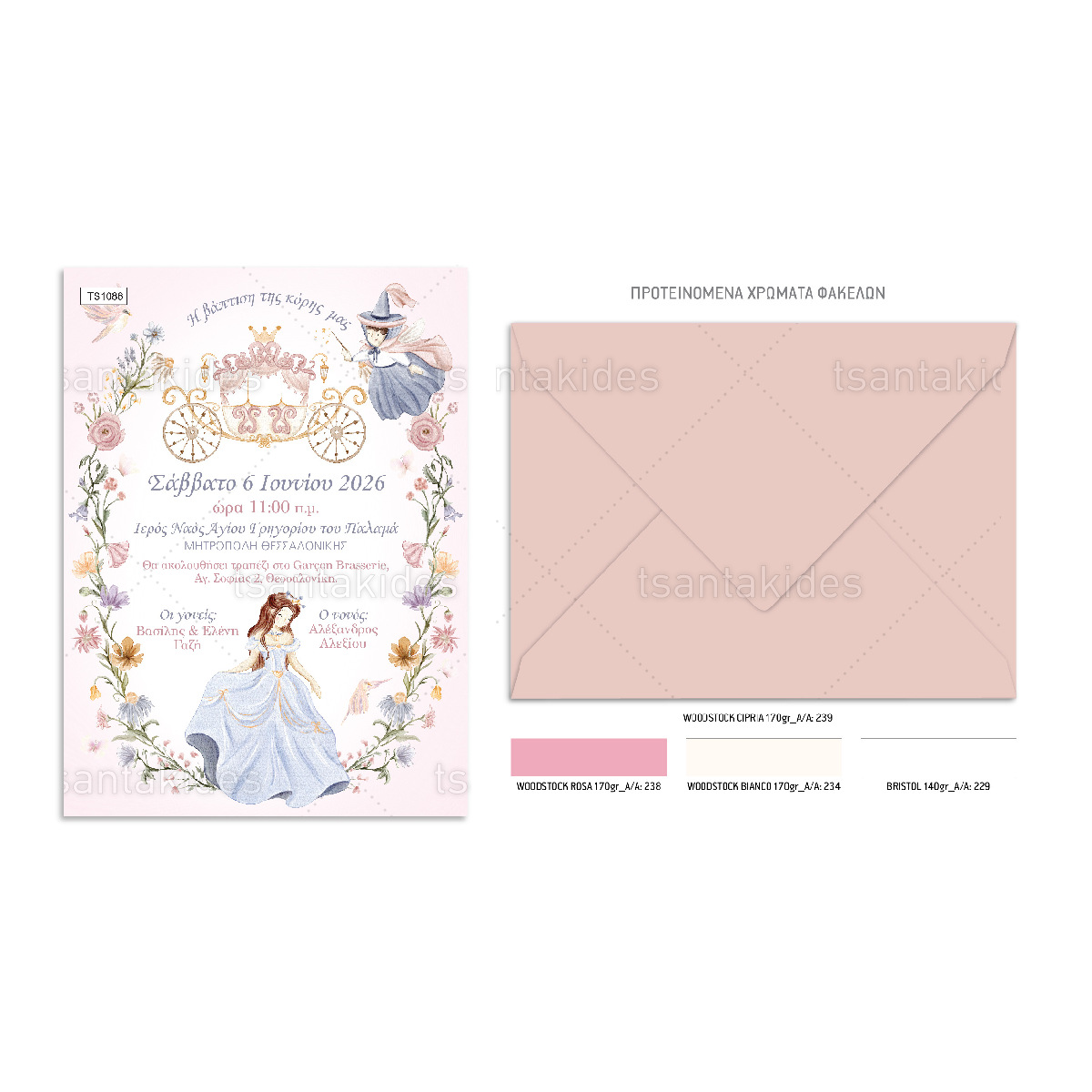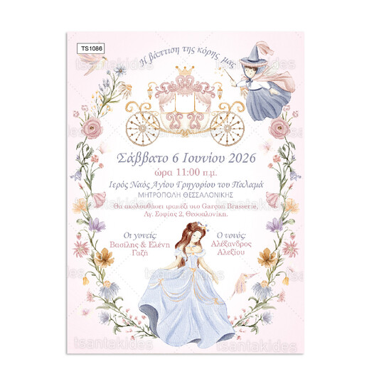 Προσκλητήριο Βάπτισης Για Κορίτσι Cinderella 1086