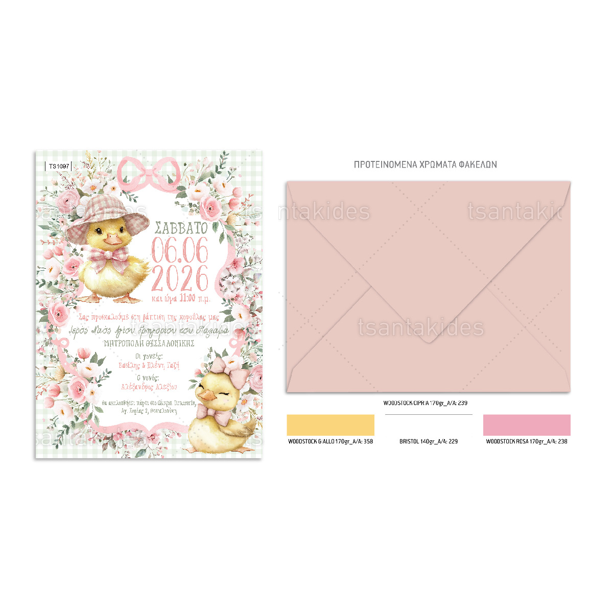 Προσκλητήριο βάπτισης για κορίτσι με θέμα Cute Ducklings.