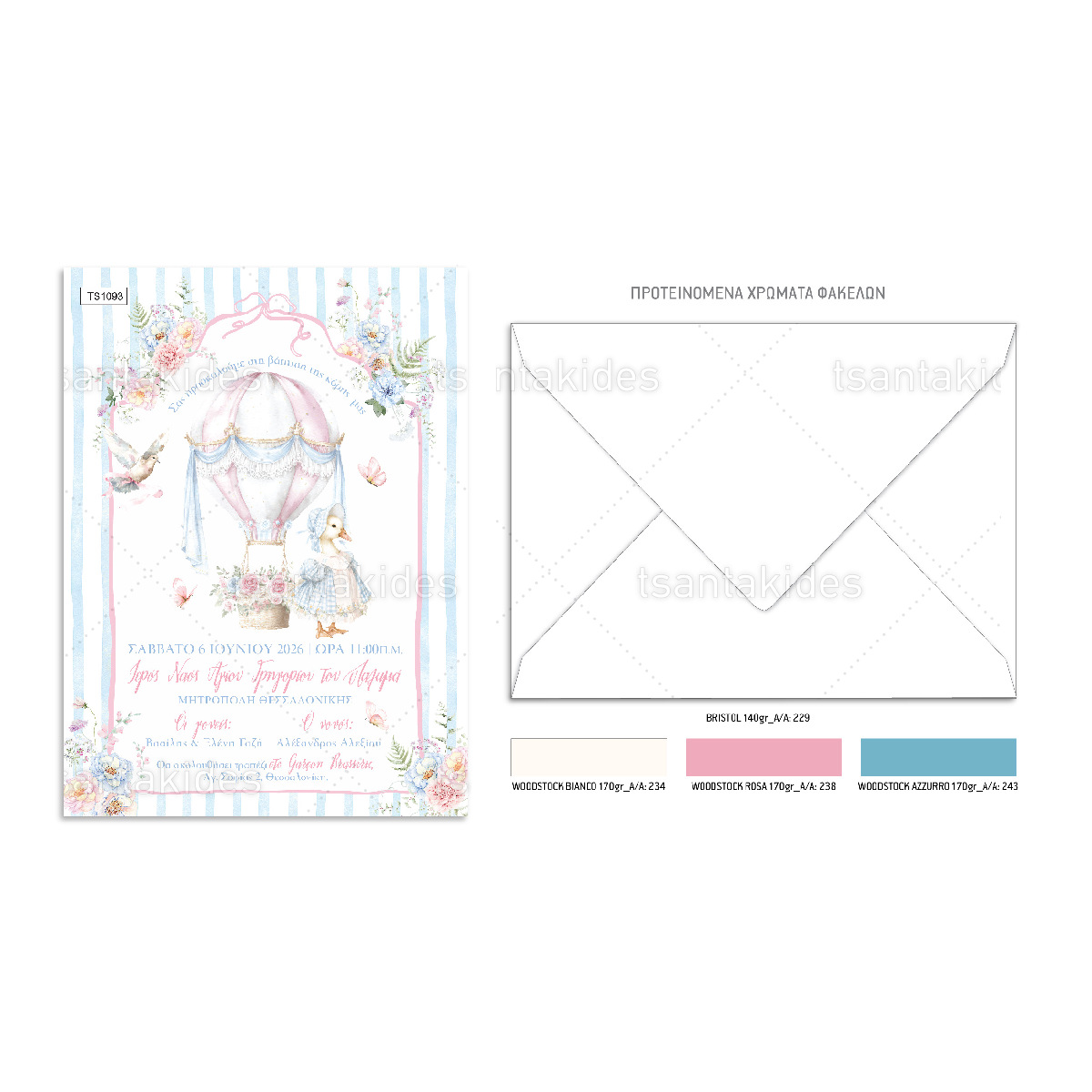 Η ελάχιστη ποσότητα παραγγελίας για το προϊόν "Προσκλητήριο Βάπτισης Για Κορίτσι Rose Hot Air Balloon 1093" είναι τα 30 τεμάχια".