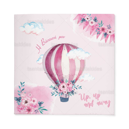 Προσκλητήριο σκληρό καπάκι, παραμυθάκι μικρό, εκτυπωμένο με θέμα το αερόστατο