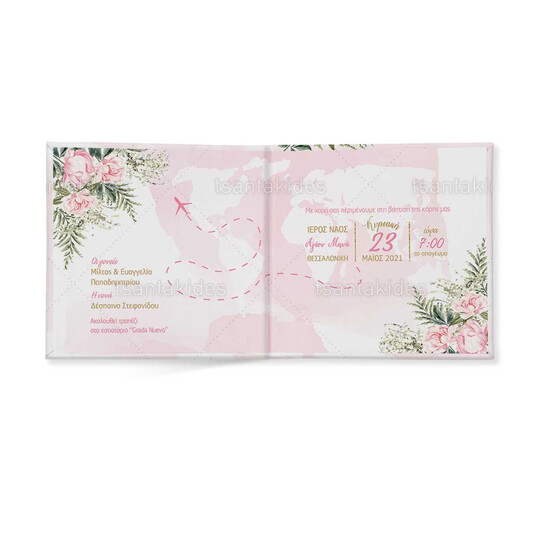 Προσκλητήριο σκληρό καπάκι, παραμυθάκι μικρό, εκτυπωμένο με θέμα travel girl