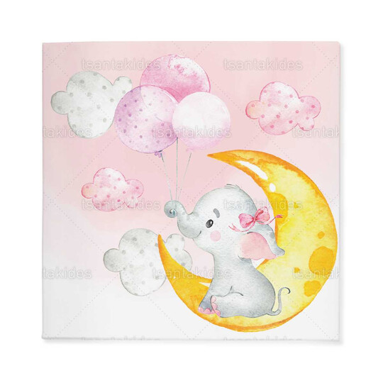 Προσκλητήριο σκληρό καπάκι, παραμυθάκι μικρό, εκτυπωμένο με θέμα το μικρό ελεφαντάκι στο φεγγάρι