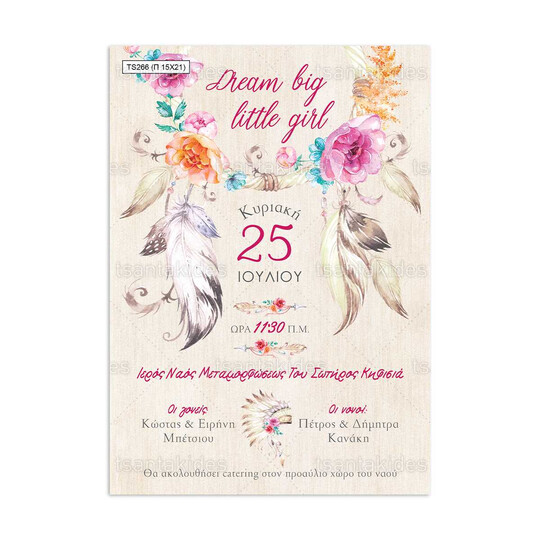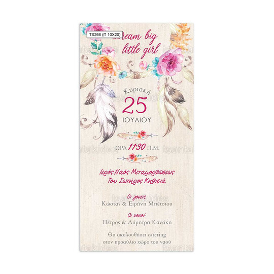 Προσκλητήριο βάπτισης παπυράκι εκτυπωμένο με θέμα boho ονειροπαγίδα