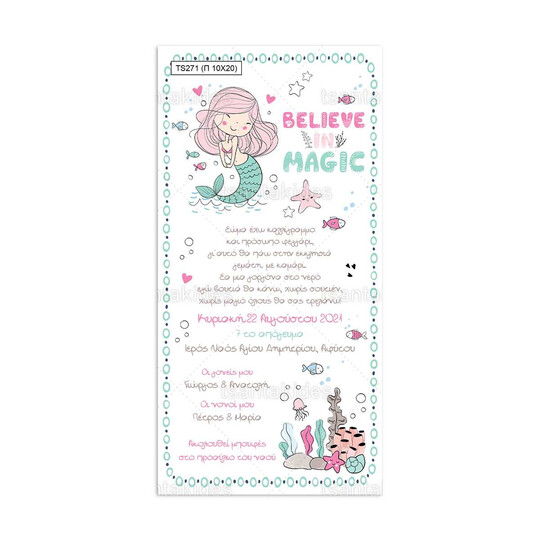 Προσκλητήριο βάπτισης παπυράκι εκτυπωμένο με θέμα τη γοργόνα στο βυθό