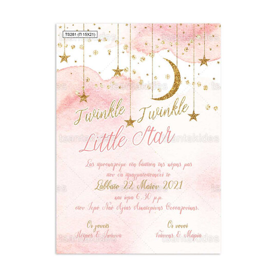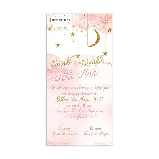 Προσκλητήριο βάπτισης παπυράκι εκτυπωμένο με θέμα twinkle little stars