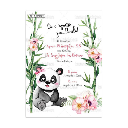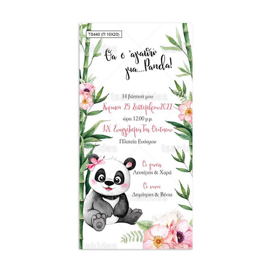 Προσκλητήριο βάπτισης παπυράκι εκτυπωμένο με θέμα Baby Girl Panda